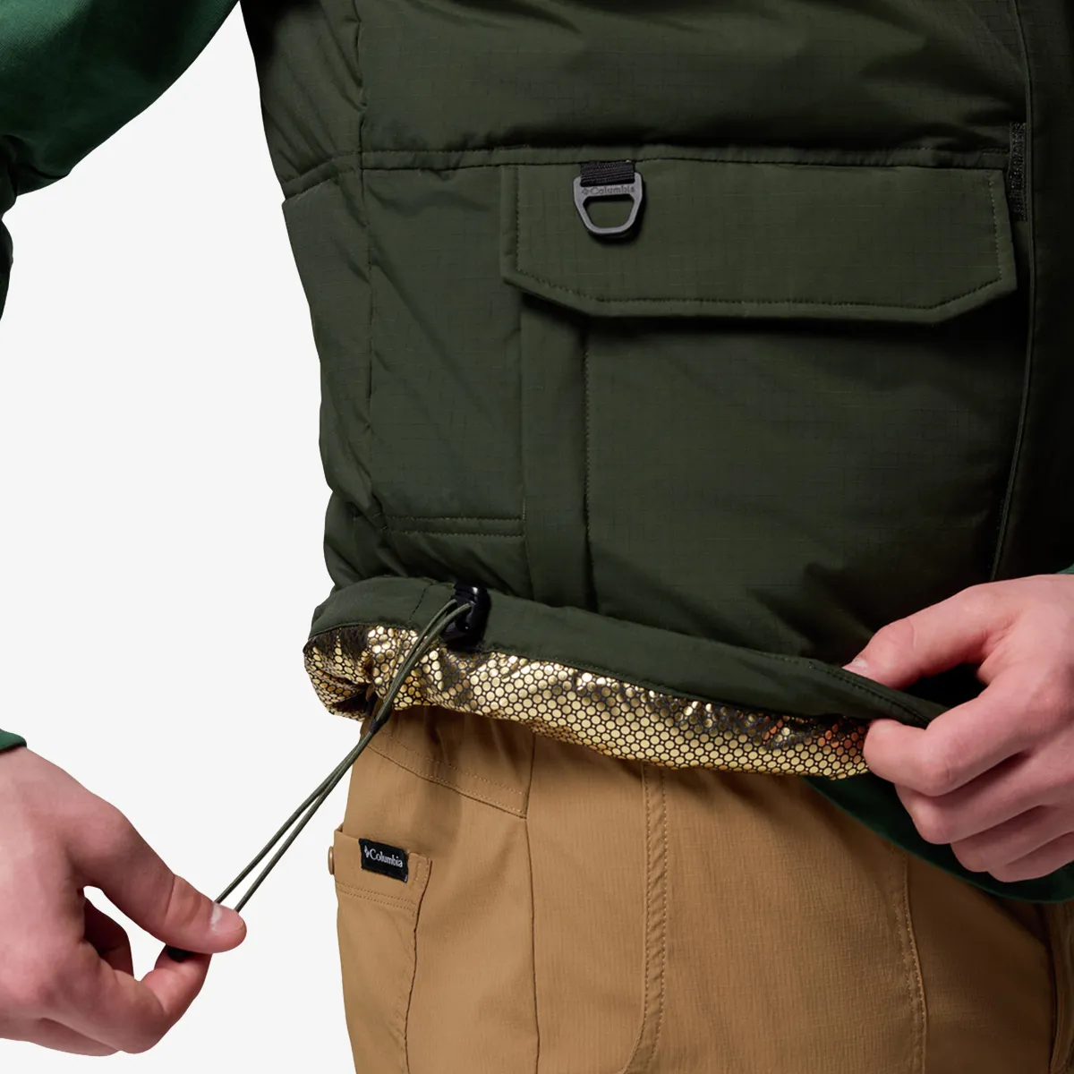 Podesivi rub sa učkurom: Omogućava zatezanje donjeg dela prsluka kako bi se sprečio prodor hladnog vazduha.